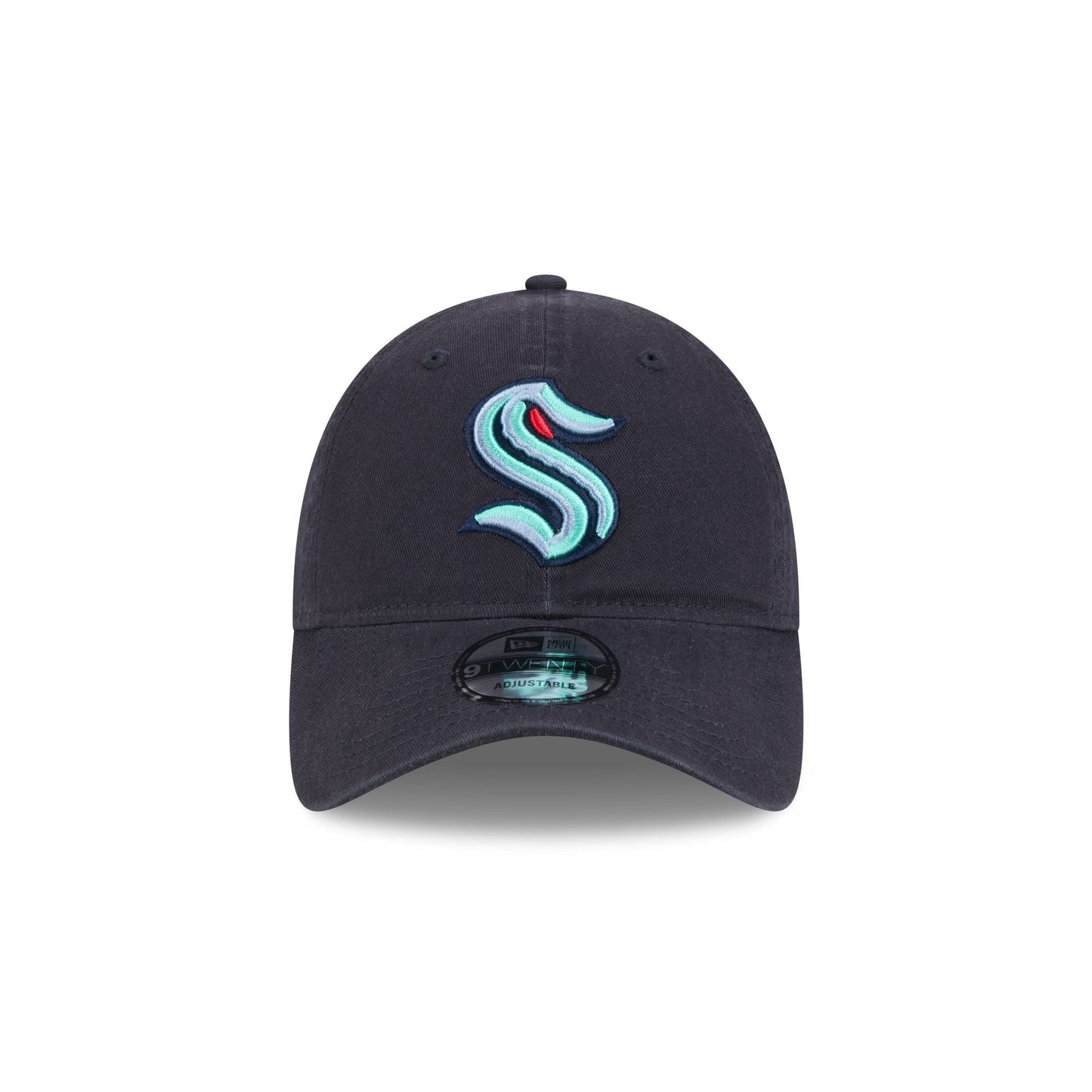 The Seattle Kraken Team Tag 9TWENTY Adjustable Cap features an embroidered Kraken logo at the front panels with a team tag on an adjustable D-Ring closure at the rear.